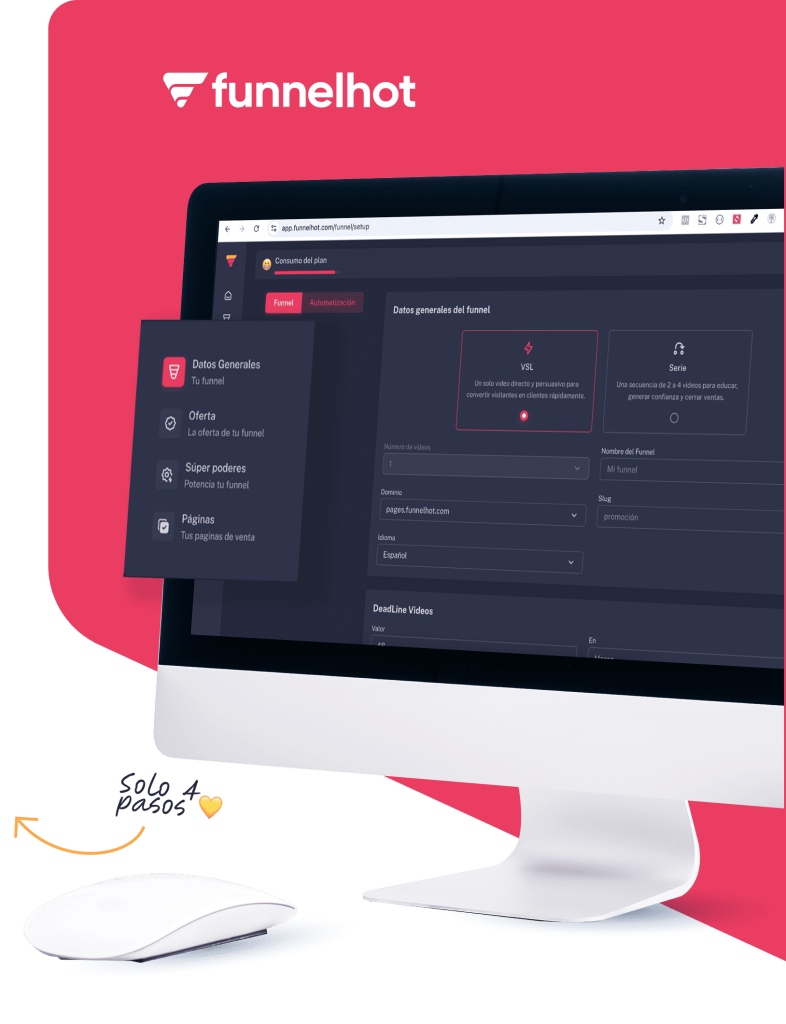 Tan simple como llenar algunos datos en un simple formulario y ¡walaaaaaaa!, la magia de Funnelhot construye el funnel sin necesidad de códigos ni cosas raras.